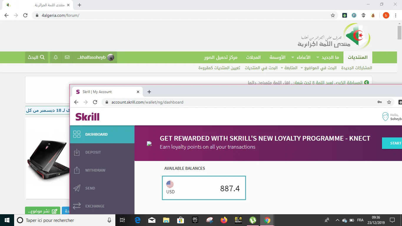 تم البيع متوفر 500 دولار سكريل مقابل 195 دج للدولار / ccp