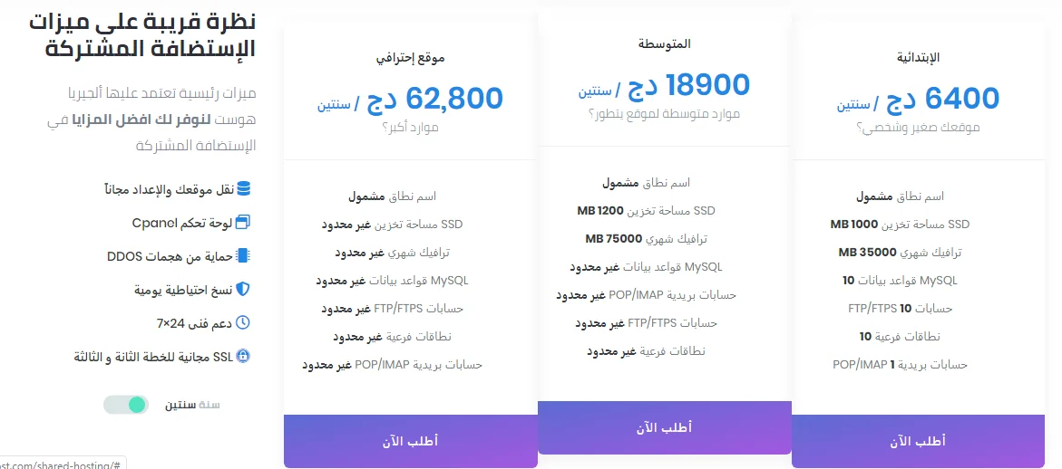 الخدمة التي نقدما بيع خطط إستضافة بأسعار معقولة وفي المتناول