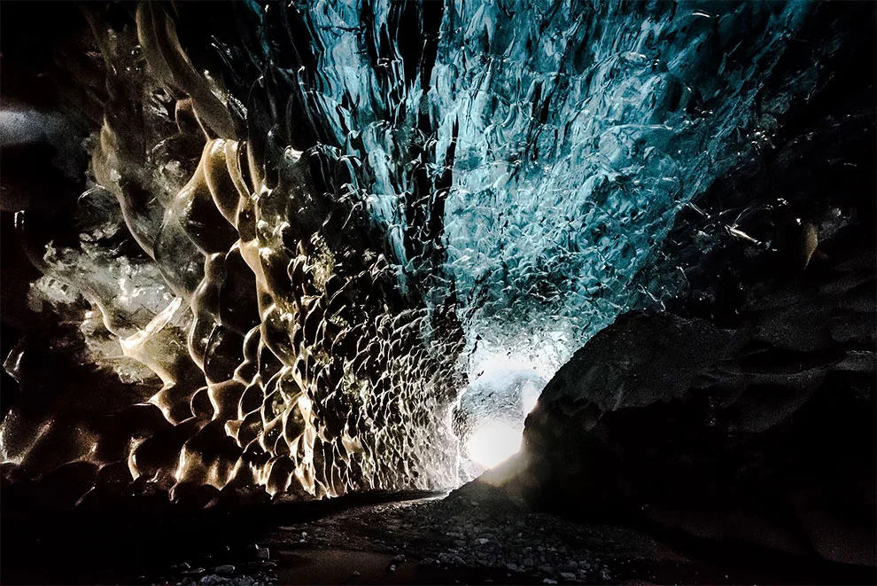 مزيج من التصوير على الأرض والتصوير الجوي ، لاكتشاف هذه الكهوف الجليّدة المحيّرة في أيسلندا