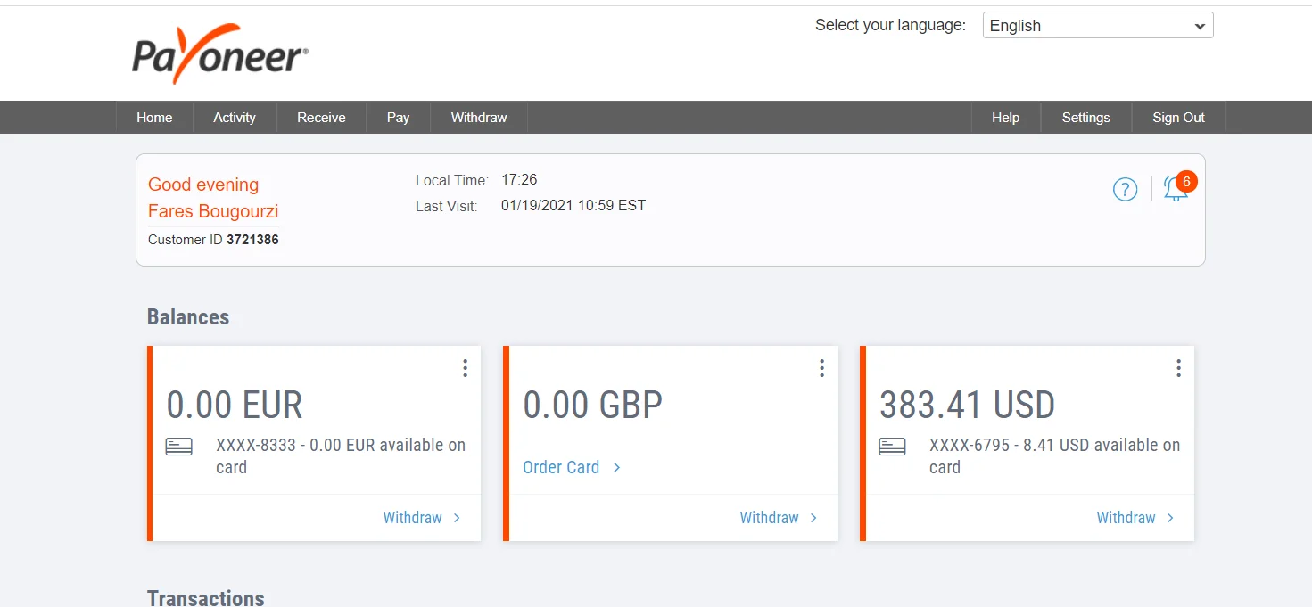 متوفر 300$ PAYONEER مقابل 190دج للدولار