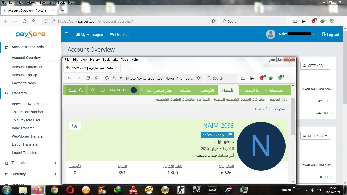 متوفر 500€ PAYSERA مقابل 218.5دج للأورو