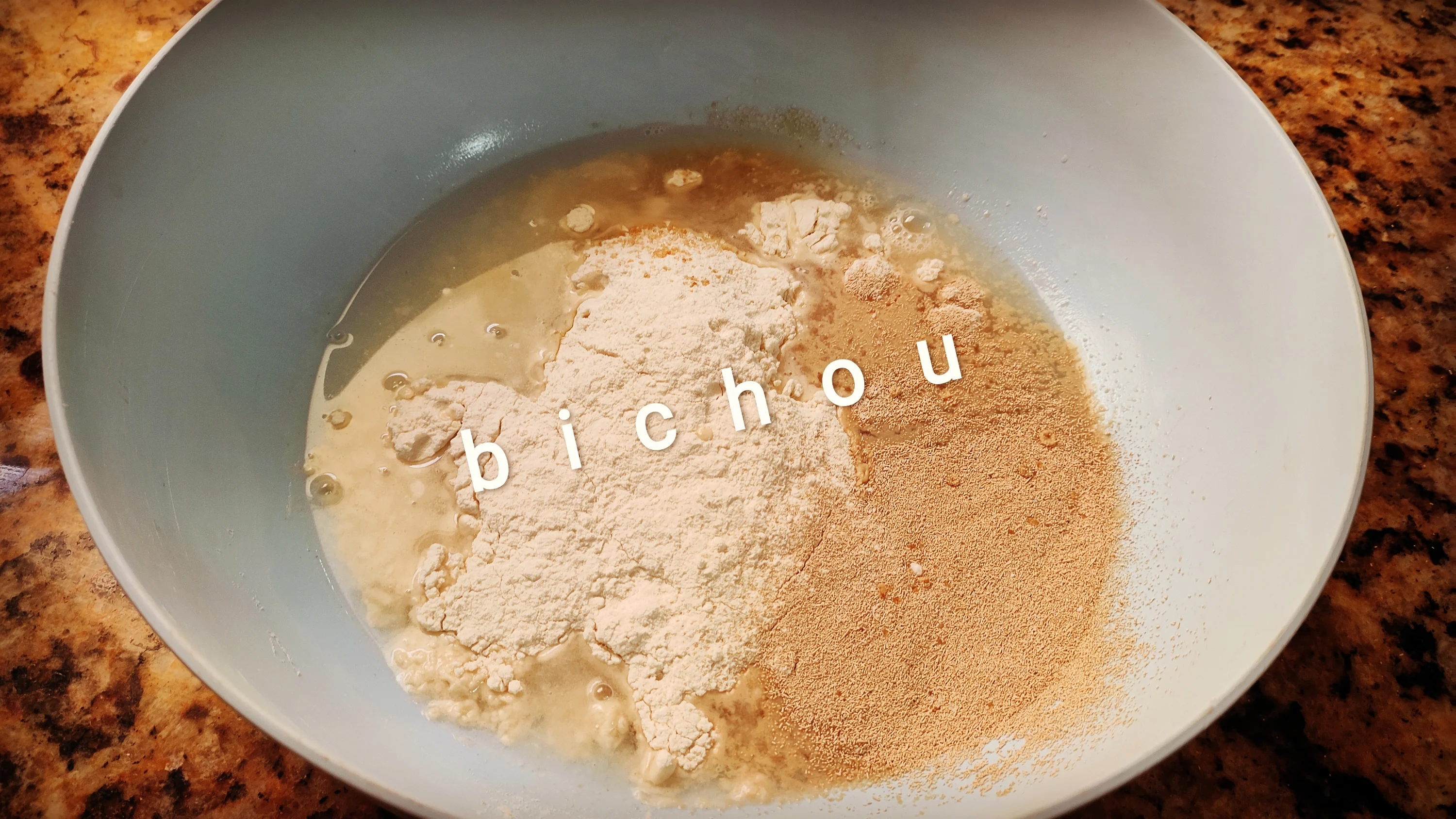 جبدت كاس ماء دافئ وزدت عليها زوج كيسان فرينة ونعرف كبيرة الخل ونعرف كبيرة خمارة ونعرف صغيرة ملح وسكر وتخلطي كلشي في رحبا مليح وتخليها ترتاح لمدة ربع ساعة منبعد كي تخمر تهبطيلها تخمار تاحا وتشكليها دوائر وتروحي تحمي زوج مقلات تع زيت وحدا فيها شوي ووحدا فيها بزاف أيا تجيبي بالحبة تحطي في المقلة لي فيها شوي زيت كي طيب شوي من تحت ترفديها وتحطيها في مقلة ليفيها زيت بزاف وتكملي طياب فيها