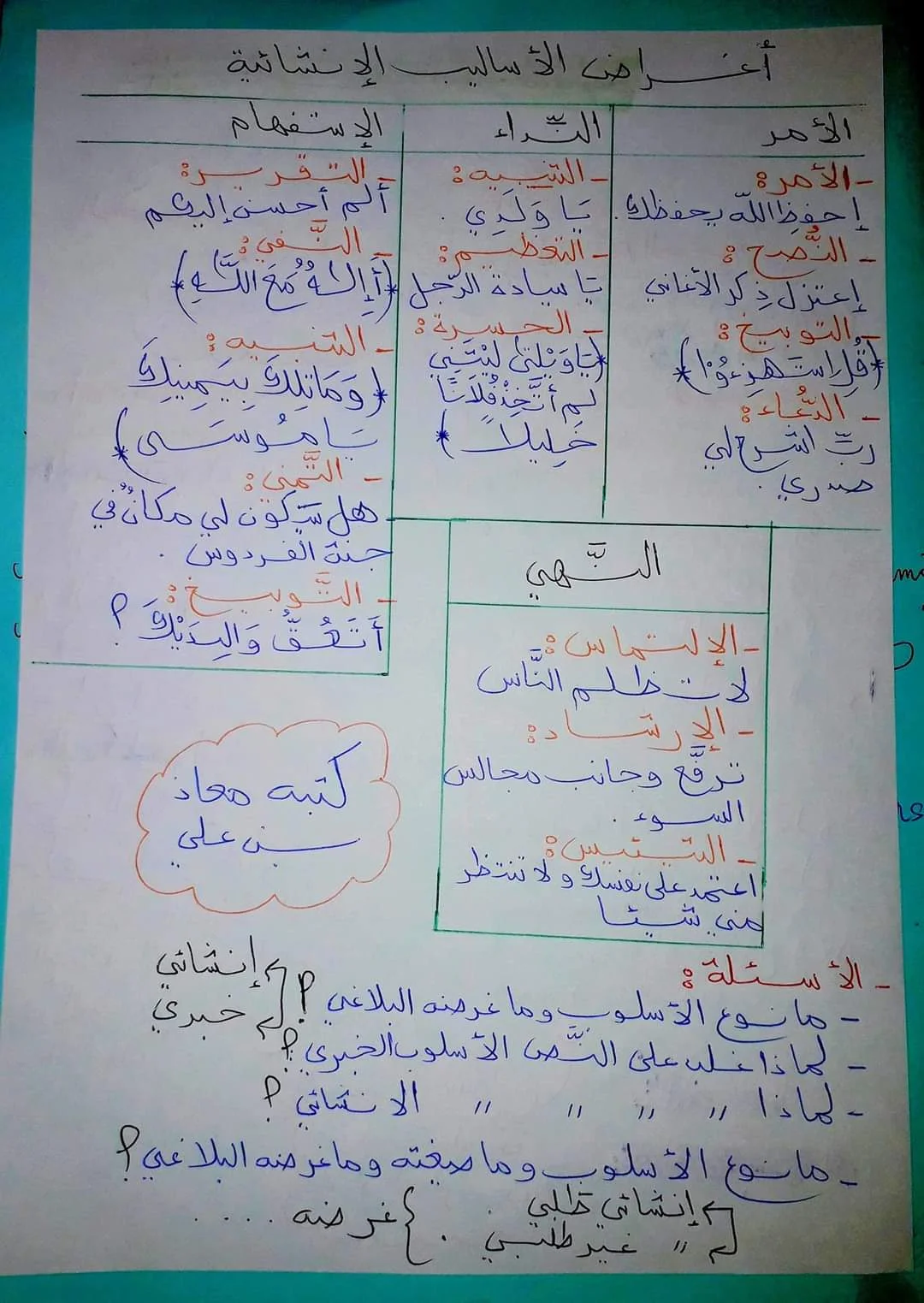 درس الأسلوب الإنشائي والأسلوب الخبري
