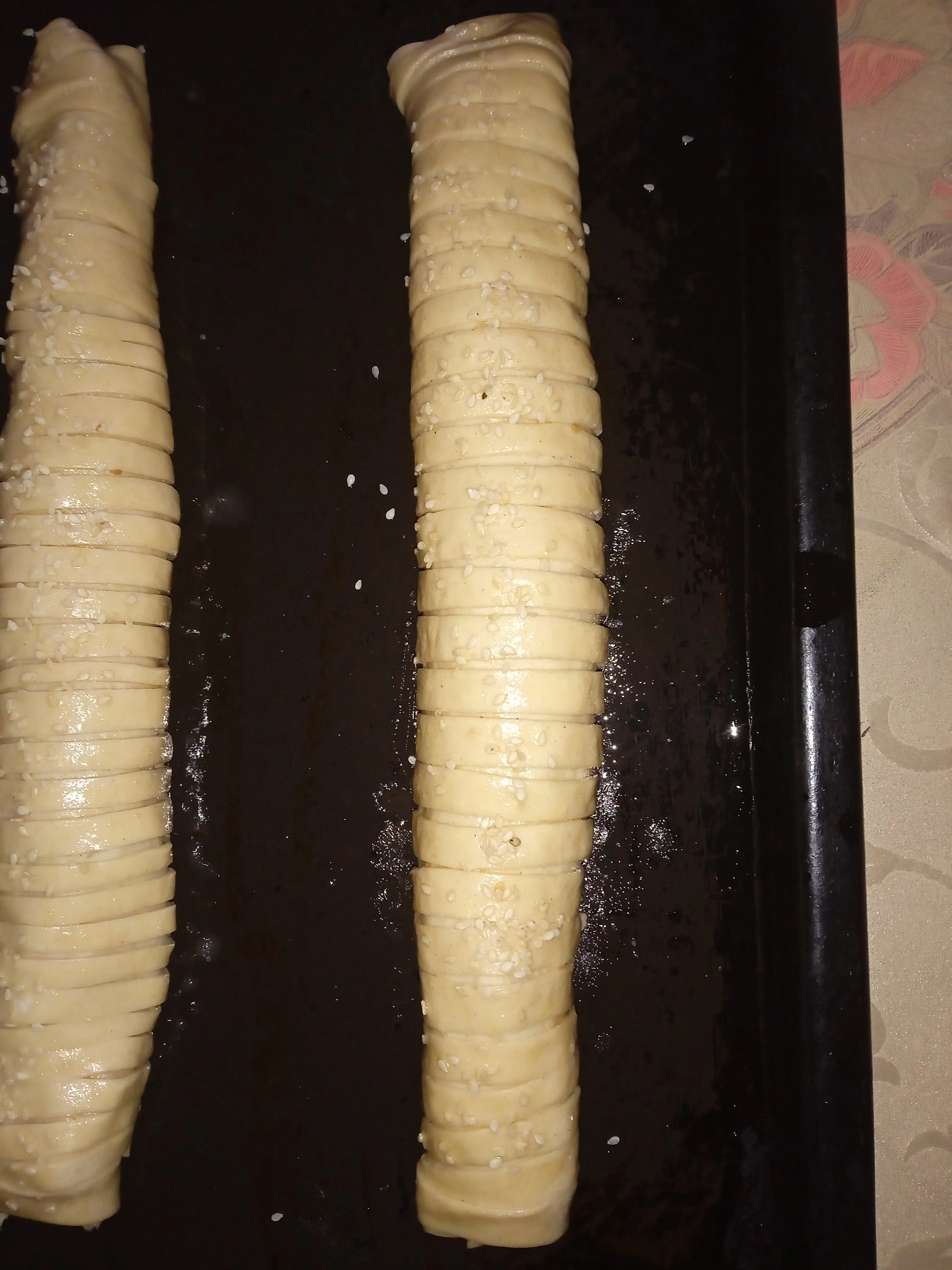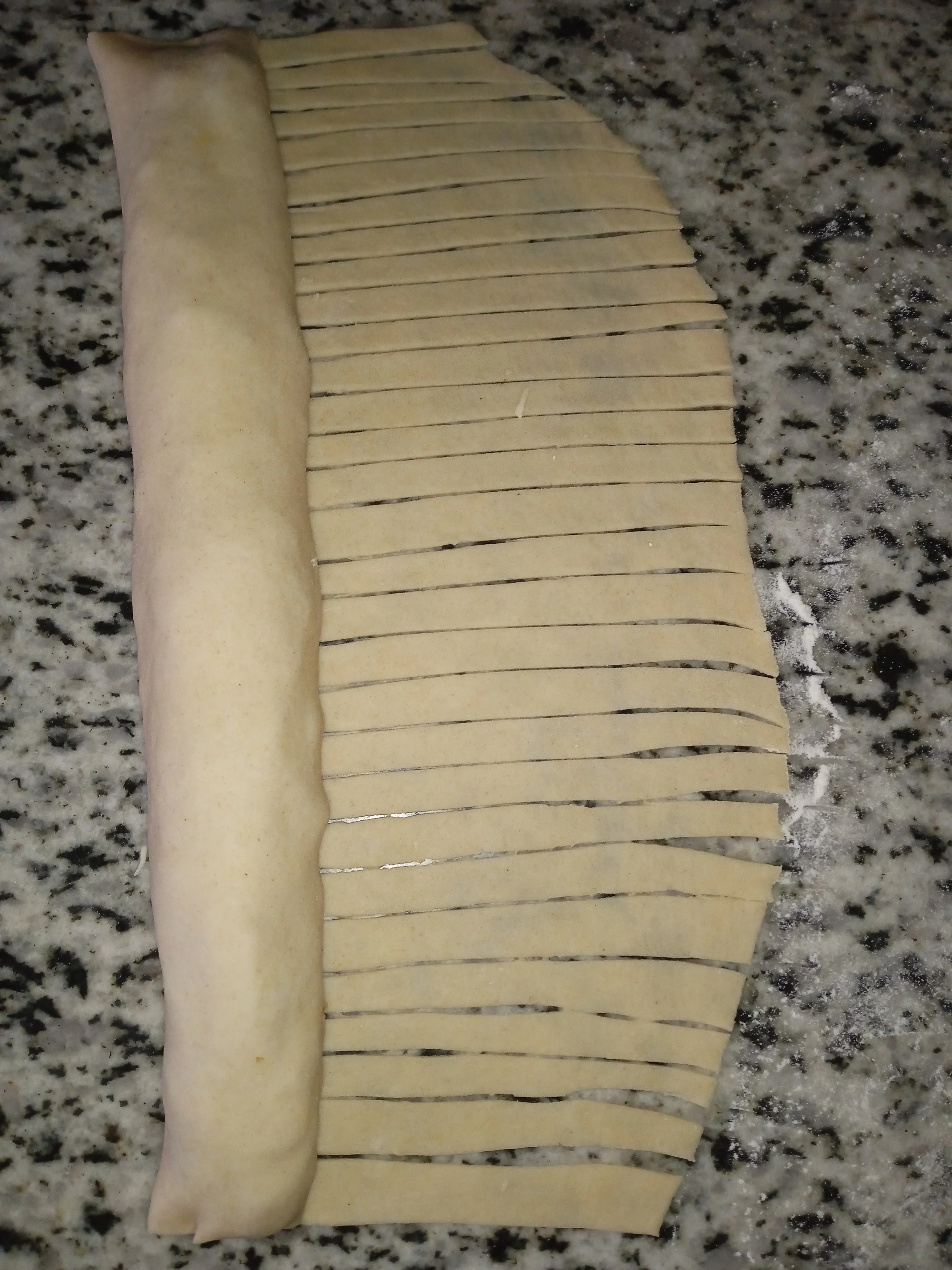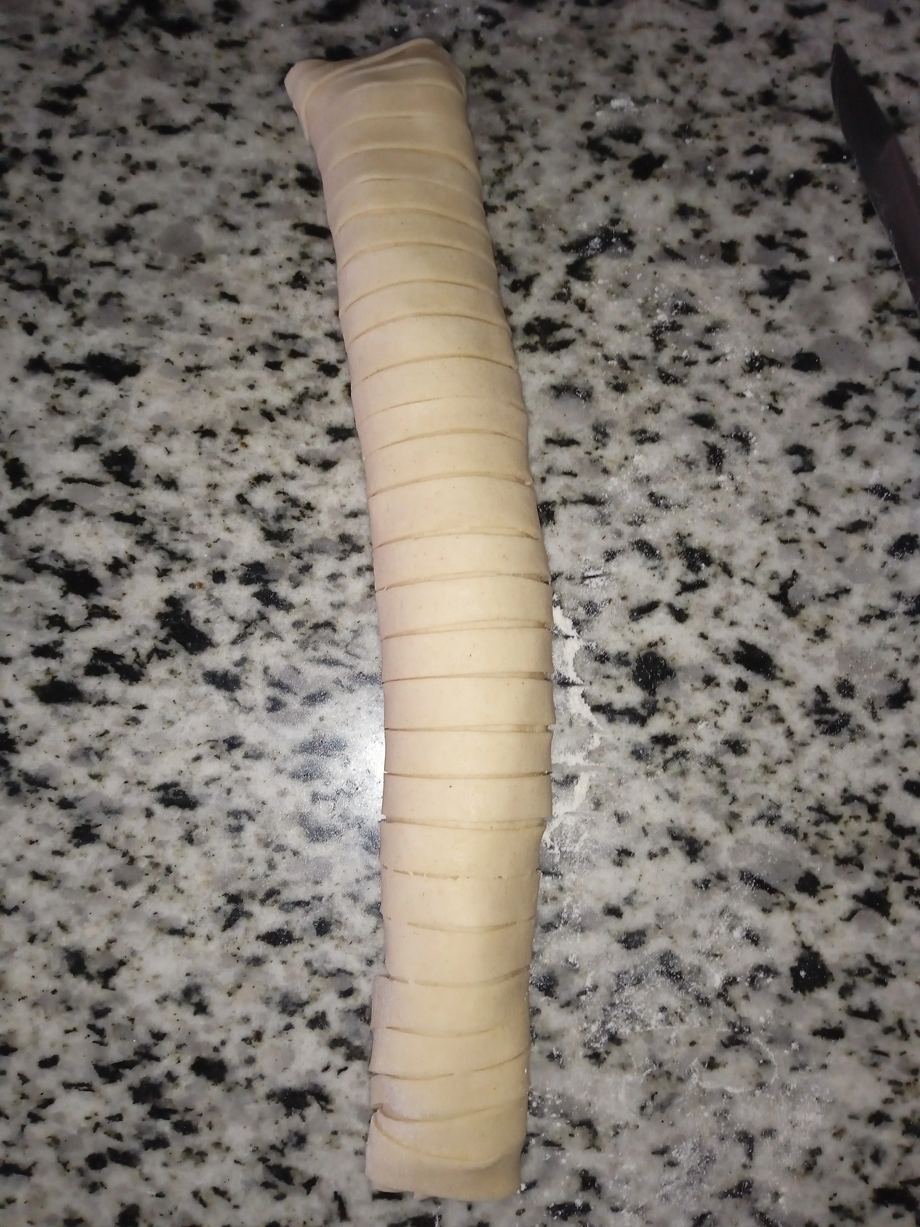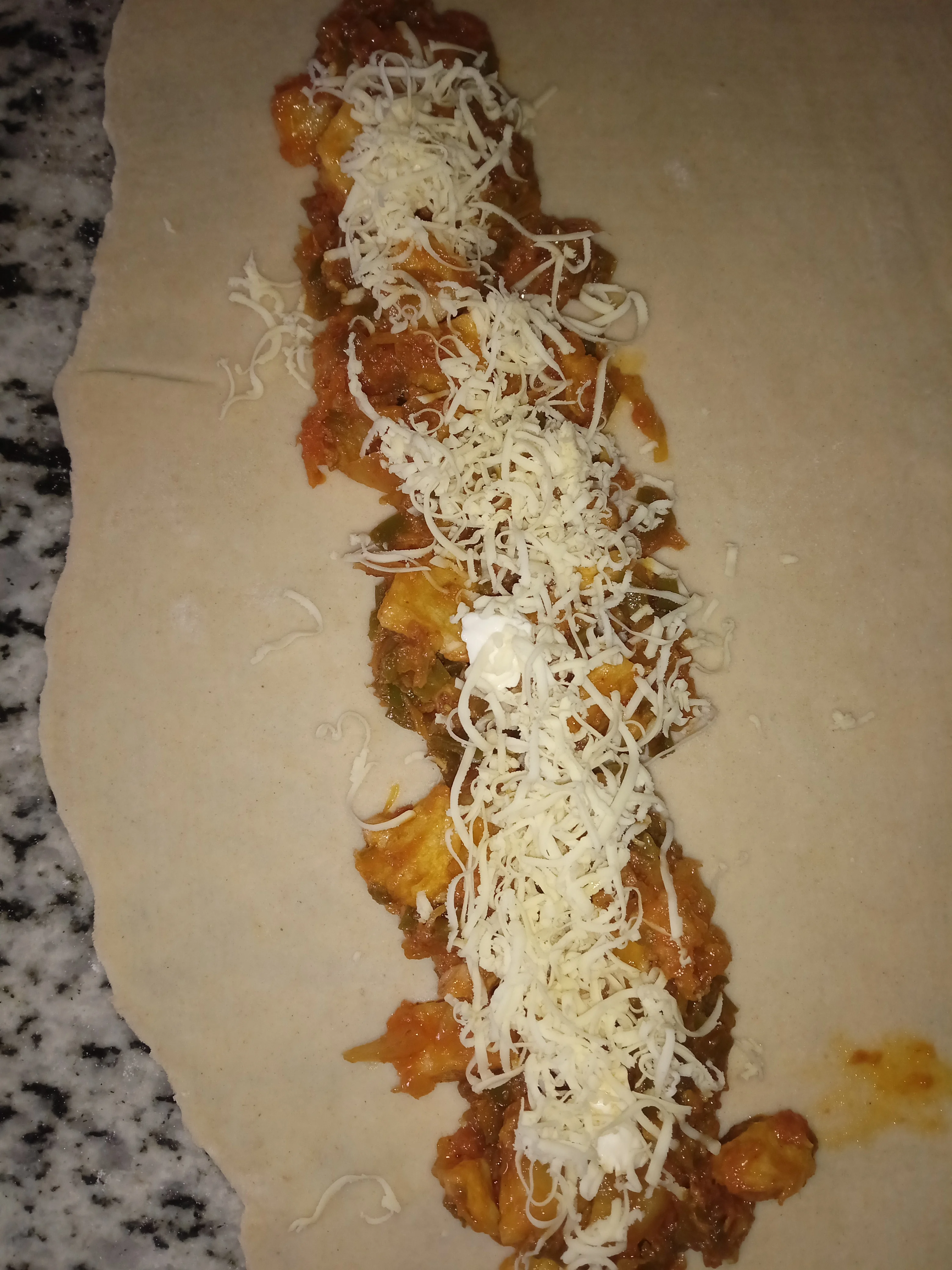 نحلو العجينة تاعنا هك شغل مستطيل نحطو الحشو ونزيدولو فرماج