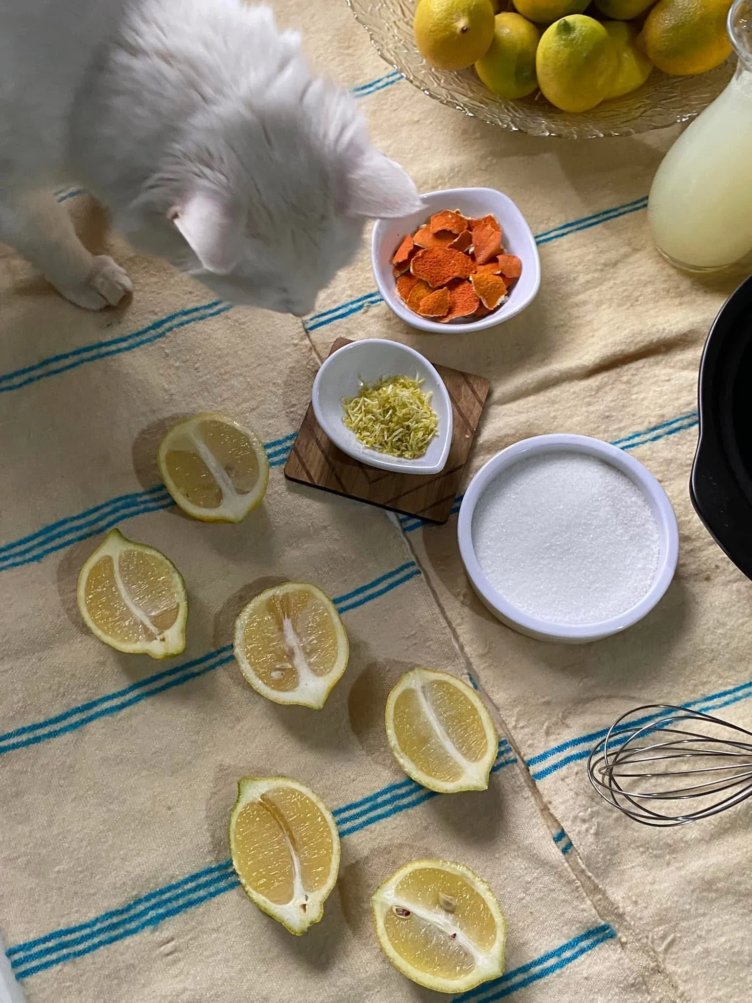 نخلط زاست الليمون مع السكر باش يطلق الذوق والرائحة تاعو مليح