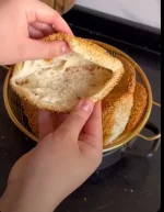نحل بالحلال وحدة نغمسها في الحليب ثم في الحلجلان ونقطعها على 2 ونخليها مباشرة في الزيت مع التقليب تنتفح