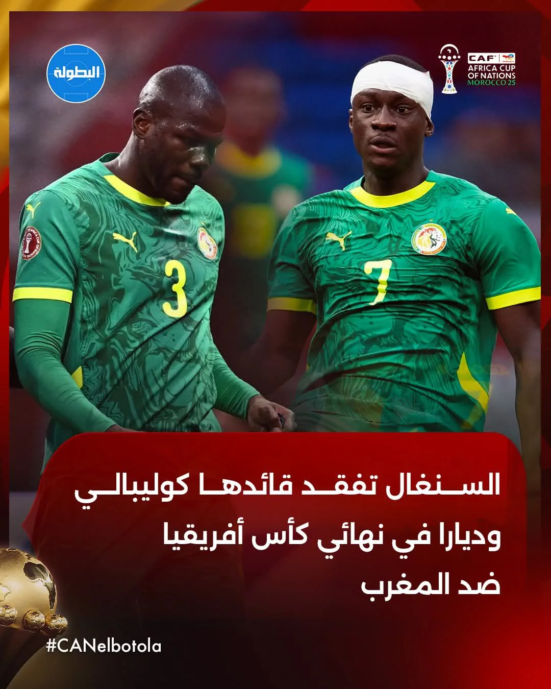 أهم حاجة الحارس الأهلاويتأكد غياب المدافع خاليدو كوليبالي و وسط ميدان المنتخب حبيب ديارا السنغالي عن النهائي بسبب الإيقاف، بعد تلقي كل منهما بطاقتين صفراوينفي مباراتي ربع ضد مالي
