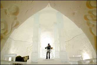 يعتبر فندق الثلج بمدينة كيوبيك بكندا واحد من ثلاثة فنادق في العالم تبنى